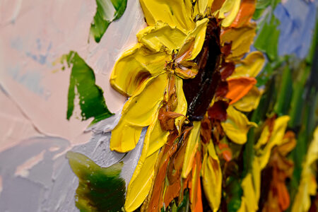 - A sunflower painted by artist Stephanie Spencer using a pallet knife. This and other painting by Spencer will be on display at the Grand through the next month.
