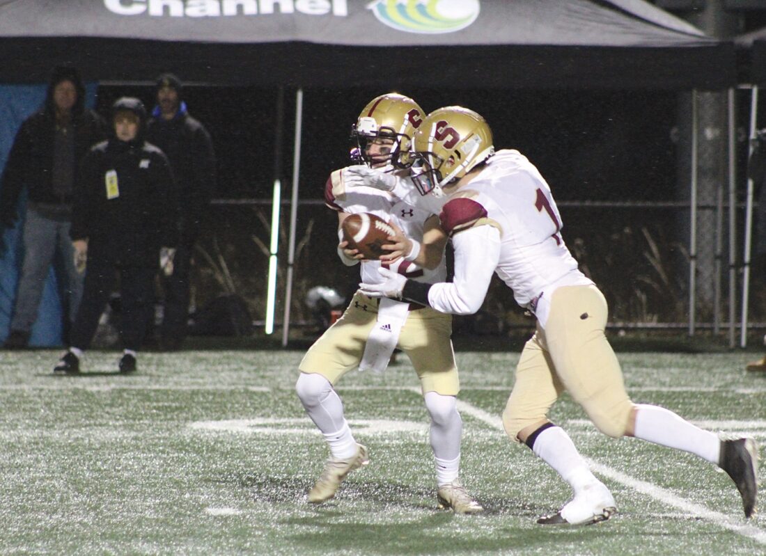 Springfield Tigers quarterback Jakob Nachreiner hands the ball off to Ashtin Johnson during the Tigers’ state tournament game against Kerkhoven-Murdock-Sunburg on Nov. 11 at Crown College. The Tigers will head to U.S. Bank Stadium next this Saturday for a Class A State Football Tournament semifinals game against Deer River. Kickoff is at 9 a.m. For more information, see page 12A.