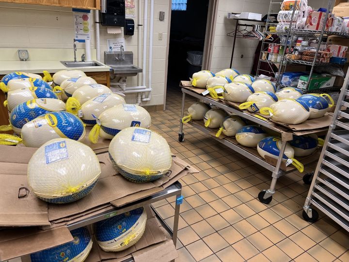 Sunday, the volunteers purchased 42 turkeys, weighing 28 lbs. each. Volunteer Les Schultz said the turkeys cost $2.29 per pound.