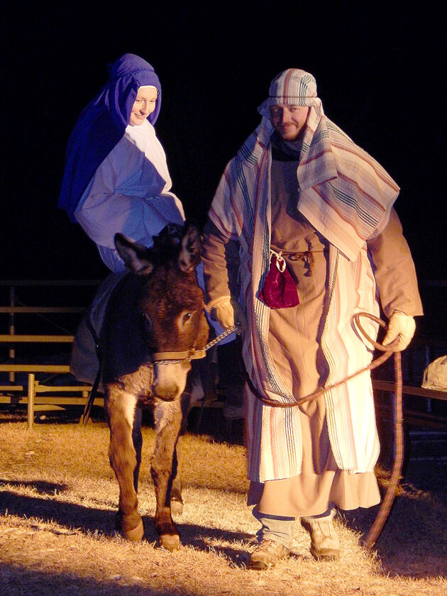 Scott and Erin Cowan and their daughter Cora will portray Mary, Joseph and Baby Jesus this year.