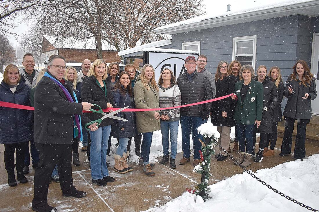 The New Ulm Area Chamber of Commerce Willkommen Committee braved the snow Thursday for a special ribbon cutting for Community Insurance Agency (CIA) at their new location at 616 North 17th Street. City Councilor Les Schultz cut the ribbon held by Willkommen Committee members Kathy Van Roekel and Emily Gleisner. CIA employees Meredith Jones, Melissa Schultz, Pam Wiltscheck, Dwight DeBoer, Andrew Meidl and Jolene Braird were on hand to celebrate the ribbon cutting. CIA originally opened in 1981 in Lafayette, but recently expanded into New Ulm. Owner Dwight DeBoer said they officially open at office in New Ulm in October. CIA is an independent insurance agency with 10 agents, offering all kinds of insurance coverage including home, auto, farm, crop and business.