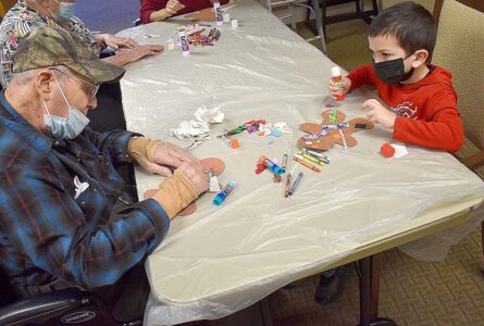 - Bob Griebel and Weston Robinson: Oak Hills resident Bob Griebel creates Christmas decorations with WLC preschool student Weston Robinson.