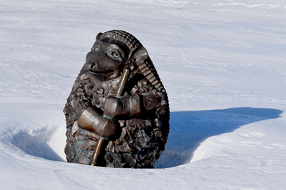Staff photo by Clay Schuldt Punxsatawney Phil may have seen his shadow this year, but Herbie the Hedgehog, in New Ulm’s German Park, is still looking forward to spring. Herbie, the mascot of the New Ulm Park and Rec Department, basked in the sun Thursday that scared Phil into predicting six more weeks of winter.