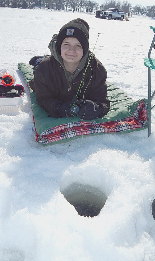 - Staff photo by Fritz Busch Joshua Klinkner of St. James tries his luck at the New Ulm Area Sport Fishermen 36th Annual Ice Fishing Contest at Clear Lake Sunday.