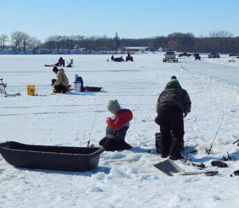 “It’s my first time ice fishing here,” Larry Klinkner said. “The weather is beautiful. It’s good to bring the family out.”