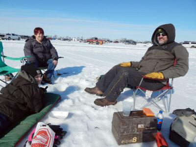 Staff photo by Fritz Busch Ice fishing is a family affair for the Klinkners of St. James. From left, Joshua, Jill and Larry Klinkner.