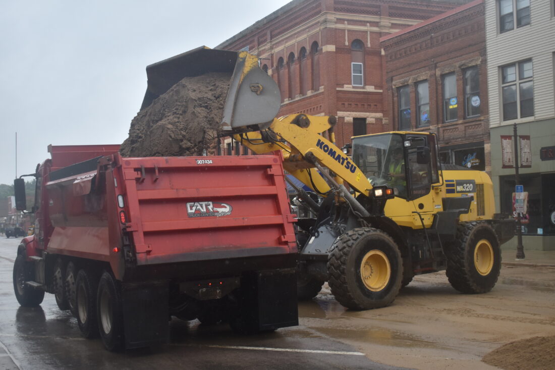 New Ulm received a much needed influx of rain while the sand was being carried away. Not only is the news good for temperatures and area farmers, it was a big help for sand removal.
