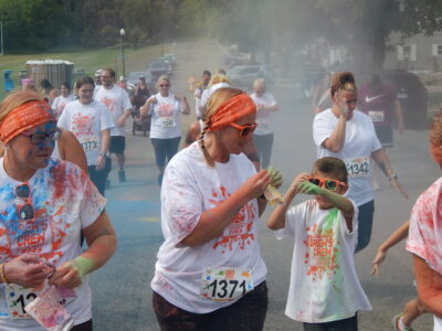 - Staff photos by Fritz Busch Drew’s Crew 5k runners and walkers get color powder at the start of the event Saturday at Harman Park.