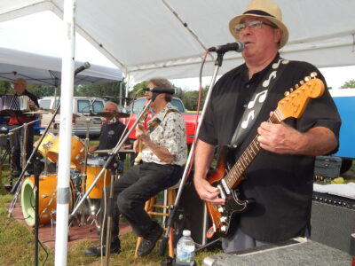 Scott Sparlin plays the guitar with the Bock Fest Boys in Harman Park during Hermann Fest.