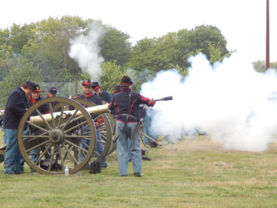 - Staff photo by Fritz Busch Civil War era cannons fire at HermannFest at Harman Park Saturday.