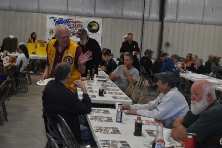 Photo by Daniel Olson Lions Club President Bob Schirlinger waves goodbye as he walks and talks to attendees at the 49th annual Lions Club fly-in breakfast Sunday. Schirlinger said meeting new people and catching up with friends is one of his favorite parts of the breakfast.
