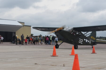 - Attendees watch in amazement as Ron Fagen drives a 1943 WWII Stenson L5 reconnaissance plane into the Lions Club fly-in breakfast. Fagen came as a representative for the Fagen Fighters WWII museum in Granite Falls.