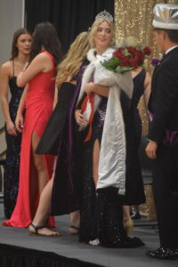 Alexandra Groebner stands in full regalia as she has been crowned 2023 homecoming queen. She shares a conversation with homecoming king Bryer Hoffman.