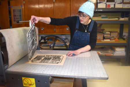 “I’ve always been super artsy my entire life,” she said. “I got into printmaking in college. It was a requirement for my degree, and I fell in love with it from there. I’m continuing it by using all the presses down here, learning about them, and using it as another art outlet.”
