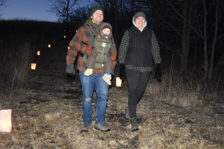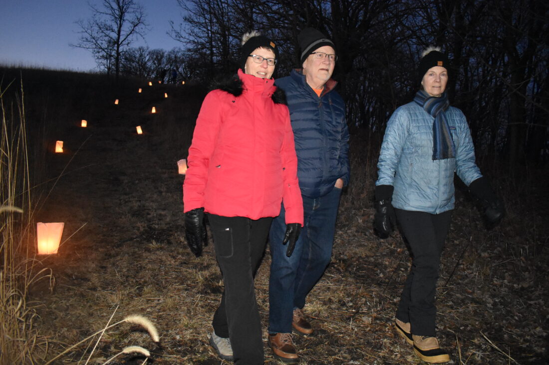 Candlelight trail participants included Nancy Haag and Tim Pulis of Mankato and Carol Ries of Madison Lake.