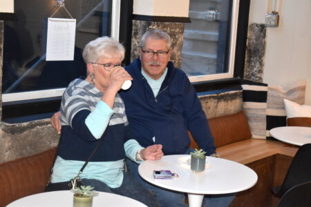 - Julie and Quent Rath (L-R) sit and enjoy what the Coffee Keller has to offer. The Raths said they drove from Redwood Falls to visit the new cafe.