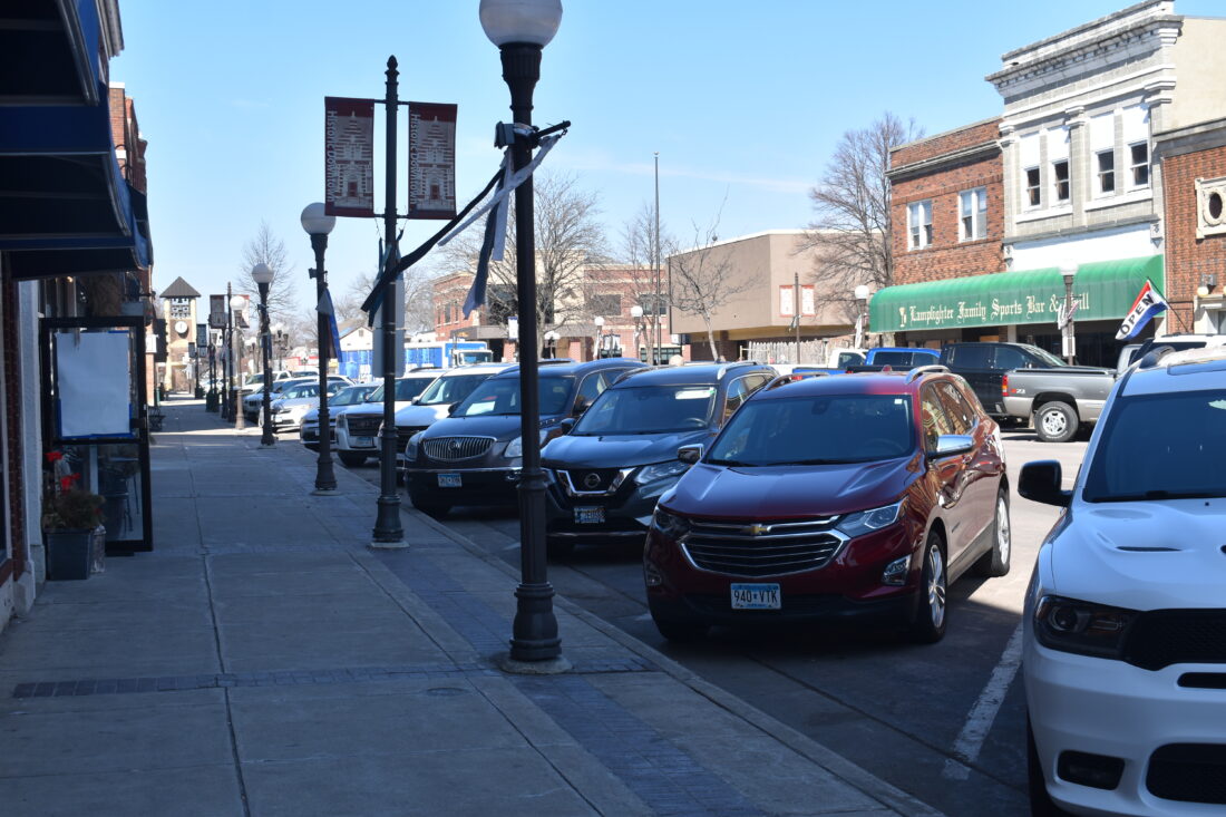 Staff photo by Fritz Busch Vehicles fill parking stalls on the 200 block of N. Minnesota St. Friday.