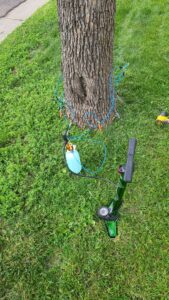 Photo Submitted by John Sanford: Belek’s Tree Service sets up a treatment solution for this ash tree. Treatments need to be done every two years.