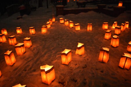 Every year, Schell’s decorates the brewery grounds with luminary candles for the holiday season. Typically, the luminaries are arranged along the walking paths through the garden and near Schell’s mansion.