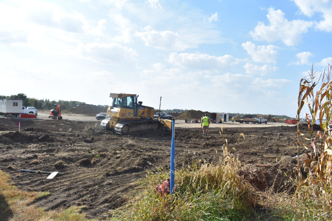 Construction crews move dirt near the New Ulm Municipal Airport as apart of the southeast apron expansion.