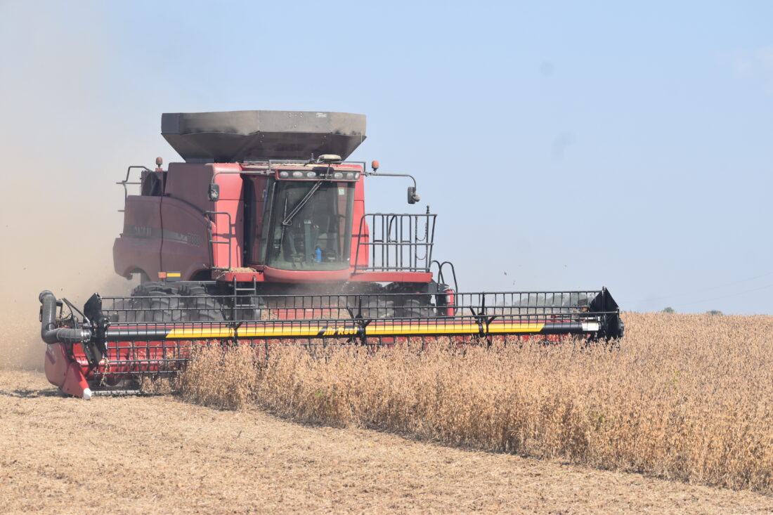 “A week ago, when we started harvesting beans, we had 15-16% moisture. Today (Wednesday), they’re at 7.5%. We’ve losing about four bushels an acre due to dryness. When you get this much heat and wind, it really cooks everything out here.”