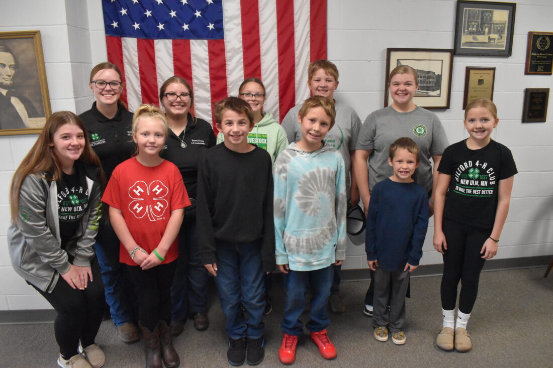 Staff photo by Fritz Busch Milford 4-H Club members post after attending the Brown County Board of Commissioners meeting Tuesday. Pictured front row, from left, Natalia Frederickson, Jade Dalluge, Apollo, Atticus and Achilles Saari. Back row, Mckenzie Lilleodden, Lillian and Brittaney Brandes, Aiden Schroeder, Calleigh Frederickson and April Schroeder.