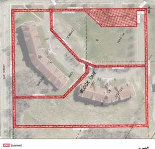 During the platting for the first Garden Terrace Addition in 1993, a five-foot easements were dedicated to the property. Portions of the new Garden Terrace building will cross portions of the easement areas.