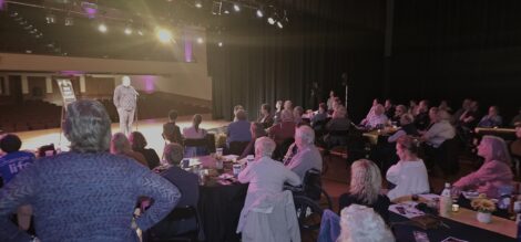The audience enjoy a performance from Land Hudson during the State Street Theater showcase The blend of Broadway hits, desserts, and community spirit made for an unforgettable evening.