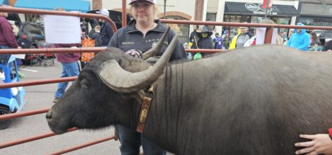 A 5-year-old water buffalo named Worf was the unlikely star of the Halloween Hop, drawing a steady stream of families and costumed children to a temporary petting zoo set up downtown.