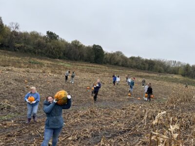 The students harvested roughly 500 pumpkins from the Guldan pumpkin patch in mid-October. The majority of the pumpkins will be decorated by the students and gifted to area nursing homes.