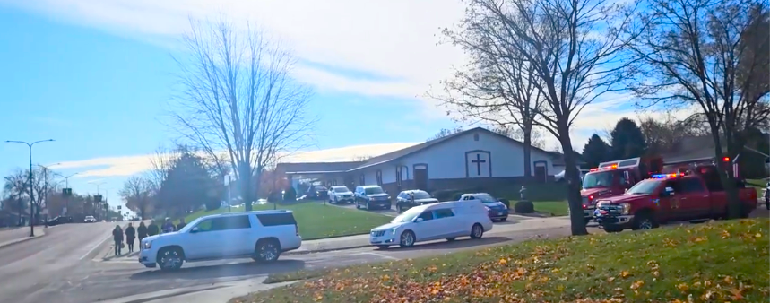As Reinarts procession left the funeral home, several community members gathered along the sidewalk to show their support for Reinarts and his family falling this unspeakable tragedy.