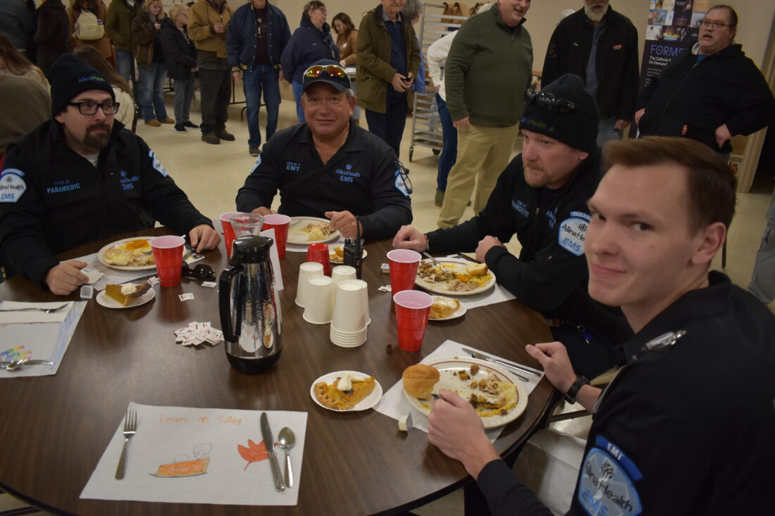 - The Community Friends Thanksgiving diner Thursday was a chance for local Emergency Medical Services (EMS) workers to get a holiday meal before the start their duty shift. L to R: Mike Euerly, Craig Portner, Tim Portner and John Zinnel.
