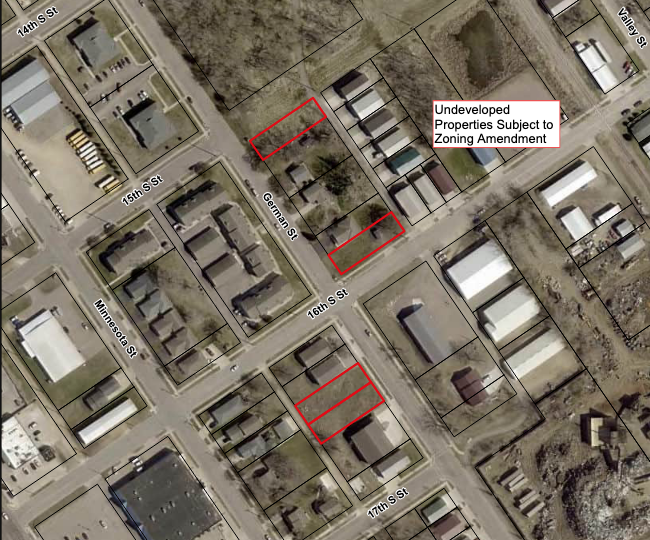Last month, a developer reached out to the city with a plan to develop the corner lot at 16th South and German Street. The developer planned to divide the lot and build two single-family homes on the lot but the zoning ordinance, but current zoning standards made development difficult.