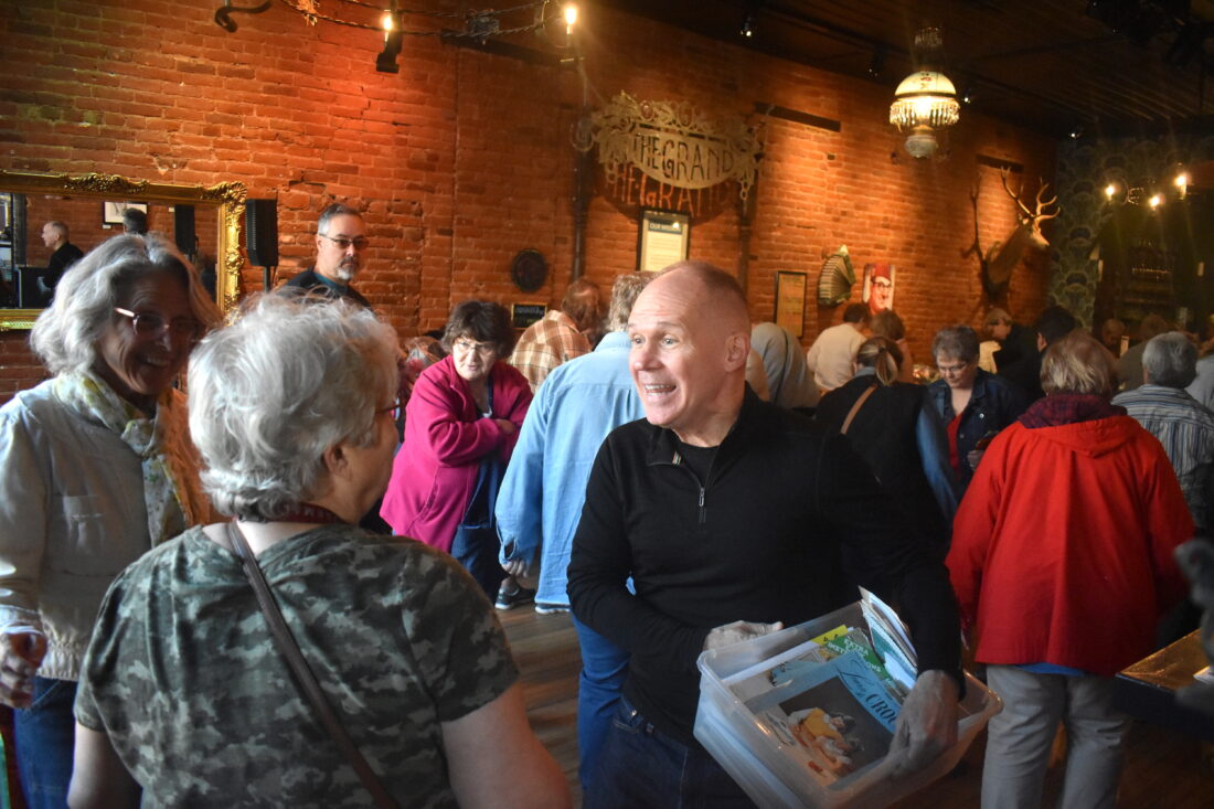 - People wait by the dozens outside The Grand before the Mary Hartten fabric sale in Oct. 2023. Chris Hartten said there was a crowd outside 30 minutes before the sale began. File photo by Dan Olson