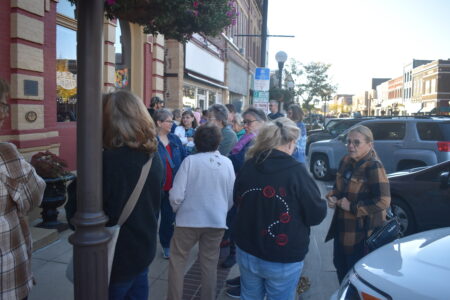 People wait by the dozens outside The Grand before the Mary Hartten fabric sale in Oct. 2023. Chris Hartten said there was a crowd outside 30 minutes before the sale began. File photo by Dan Olson