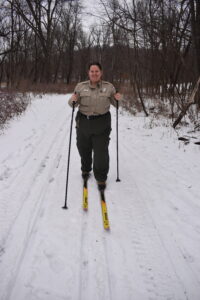 NEW ULM — New Flandrau and Fort Ridgely State Park Supervisor Natalie Brinson put on cross country skis, grabbed a couple poles and got on a Flandrau ski trail Wednesday.