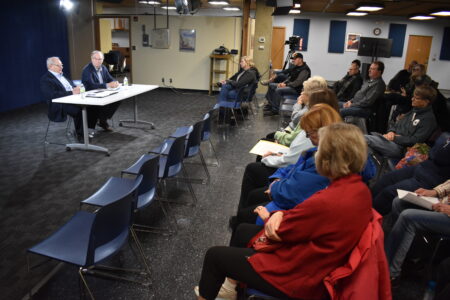 Tuesday’s legislative town hall featuring State Sen. Gary Dahms, R-Redwood Falls (left), and State Rep. Paul Torkelson, R-Hanska (right) focused on fraud. The two lawmakers believe the state’s fraud scandal will be at the center of 2026 Minnesota legislative session.