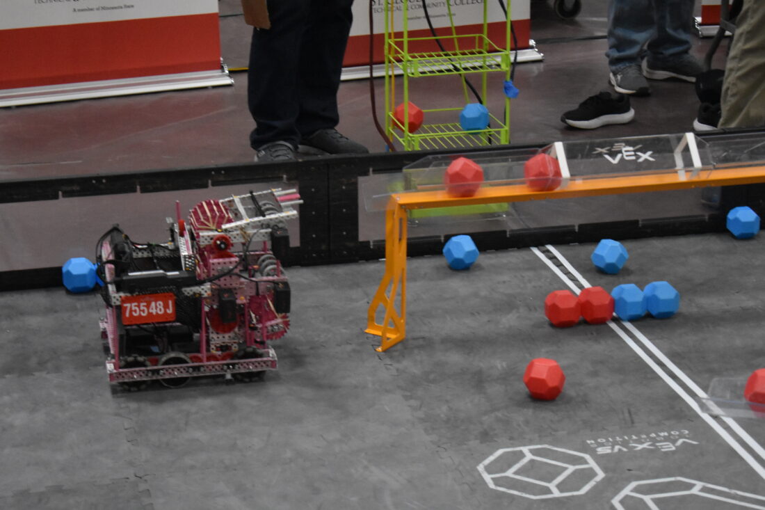 Beranek said the hardest part of the competition was the autonomous round. Each match in the tournament begins with robots being set on driver-less mode, also known as autonomous mode. This tests a team’s ability to program a robot to act without direct control from the team. The autonomous round all comes down to coding.