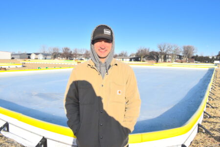 File photo by Fritz Busch Sleepy Eye Pond Hockey Association President Lucas Heiderscheidt stands in front of a pond hockey rink near Sleepy Eye Arena.