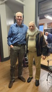 - Native German speaker Boje Siebels (left) from the Mankato German-speaking club and local German speaker and New Ulm Sprachklub member Henk Exoo at Sunday’s meeting.