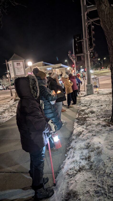 Despite the bitter cold, participants remained for the duration of the vigil, holding candles that flickered in the subzero air. The gathering offered residents a chance to reflect, show solidarity, and make a visible statement about grief, public safety, and immigration enforcement.