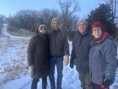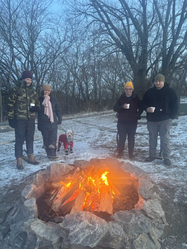 - Chad Lund, Amy Lund, Barb (dog), Allie Krause, & Kerry Heinen enjoyed hot coca by the bonfire for Fort Ridgely’s annual Candlelight Hike.