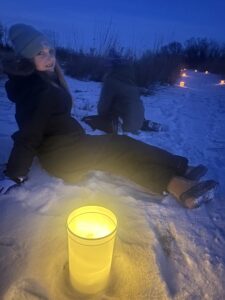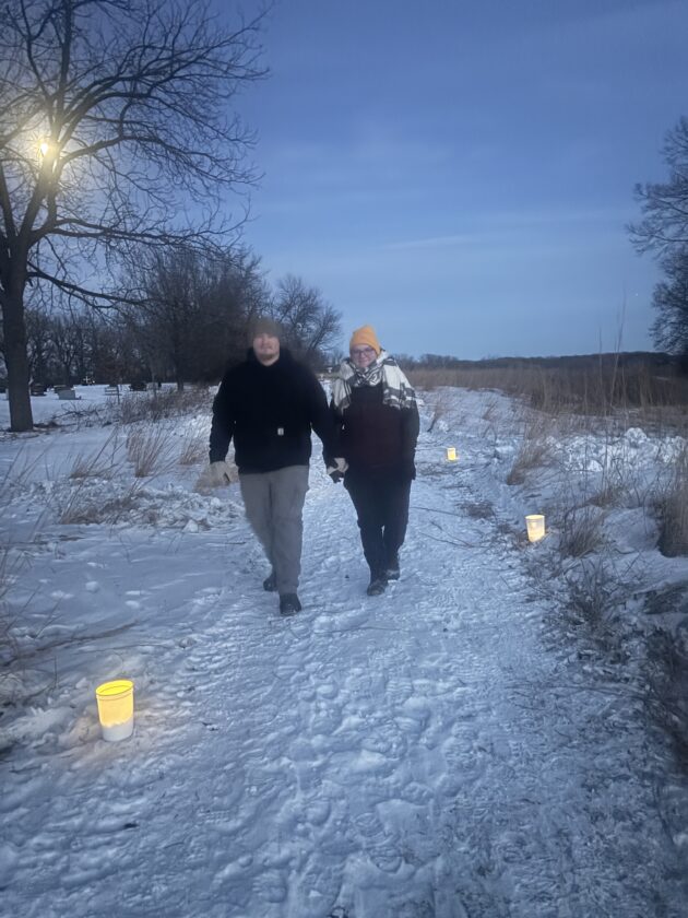 One group of hikers from out of town, stopped to take some photos of each other. Some couples strolled hand in hand, and children rolled in the snow or tried to peek into the luminary bags. Overall, the hike was beautiful, chilly, and as Grumdahl mentioned, invigorating.