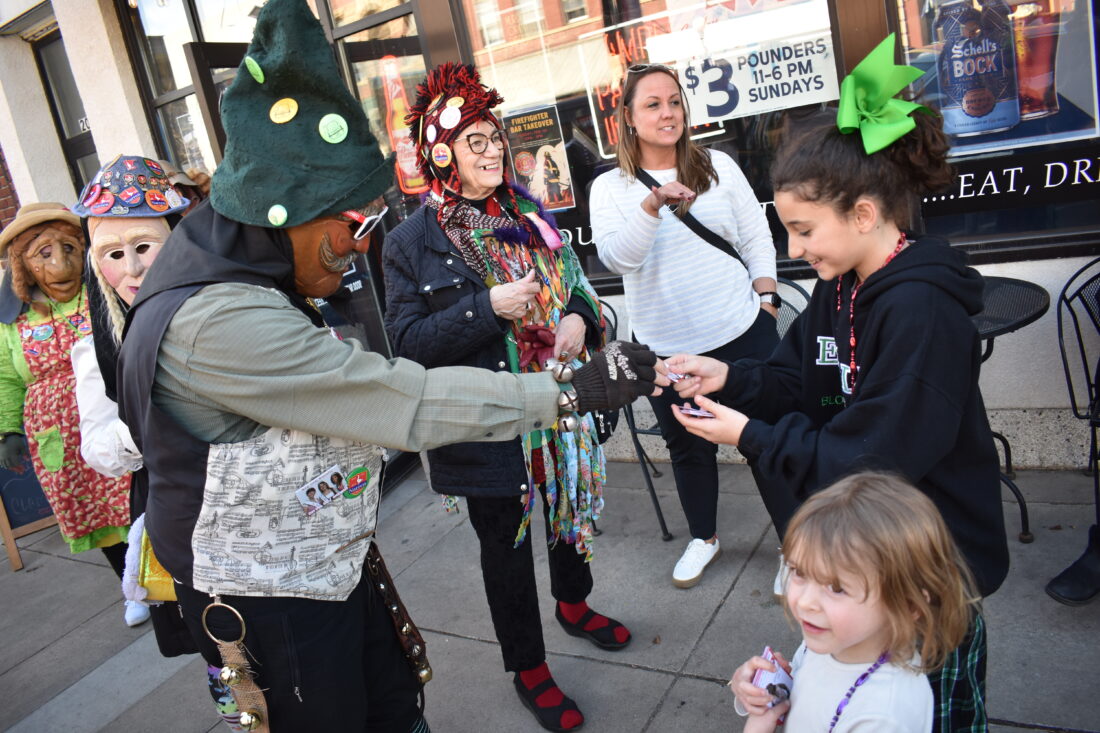 Several businesses were prepared for The Narren’s visit, but not all the customers were ready. Many of the lunch crowd at Pub 209 were from out of town when the Narren visited and were confused to see a gang of masked individuals parading an elected official around, but many got into the festival spirit.