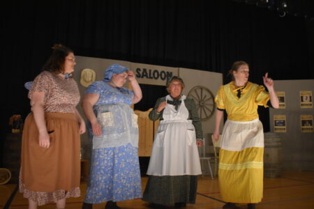 “We’ve had lots of nice weather this winter, so we didn’t have to call off many rehearsals,” she said. “I should add that our cast did lots of set and prop work.”