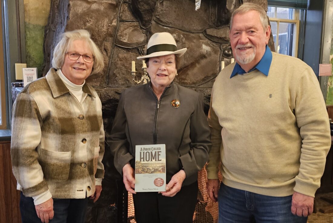 - From left: Joan Berdan, author Nancy Noyes Silcox and Steve Silcox stand together at Turner Hall, where Silcox discussed her novel, “A Place Called Home.”