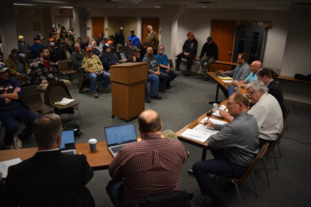 Staff photo by Fritz Busch Brown County Commissioners host a shotgun ordinance public hearing to regulate firearms deer hunting in Brown County Wednesday.