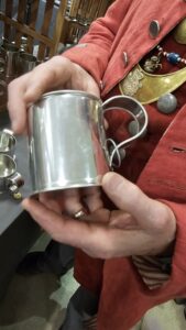 Christian Hagemann, the tinsmith, with the tin cup that inspired his 31-year career in historical tinware.