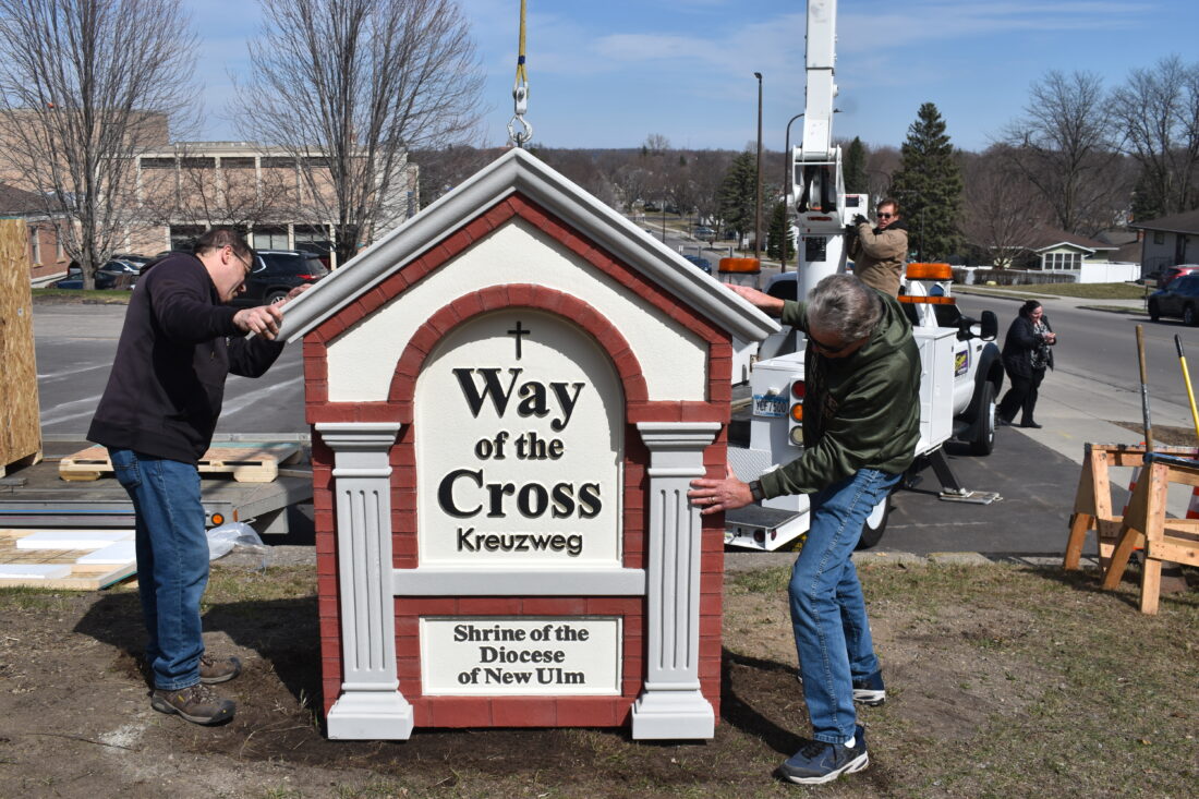 NEW ULM — Just in time for Good Friday, a new sign was installed at the Way of the Cross Wednesday.