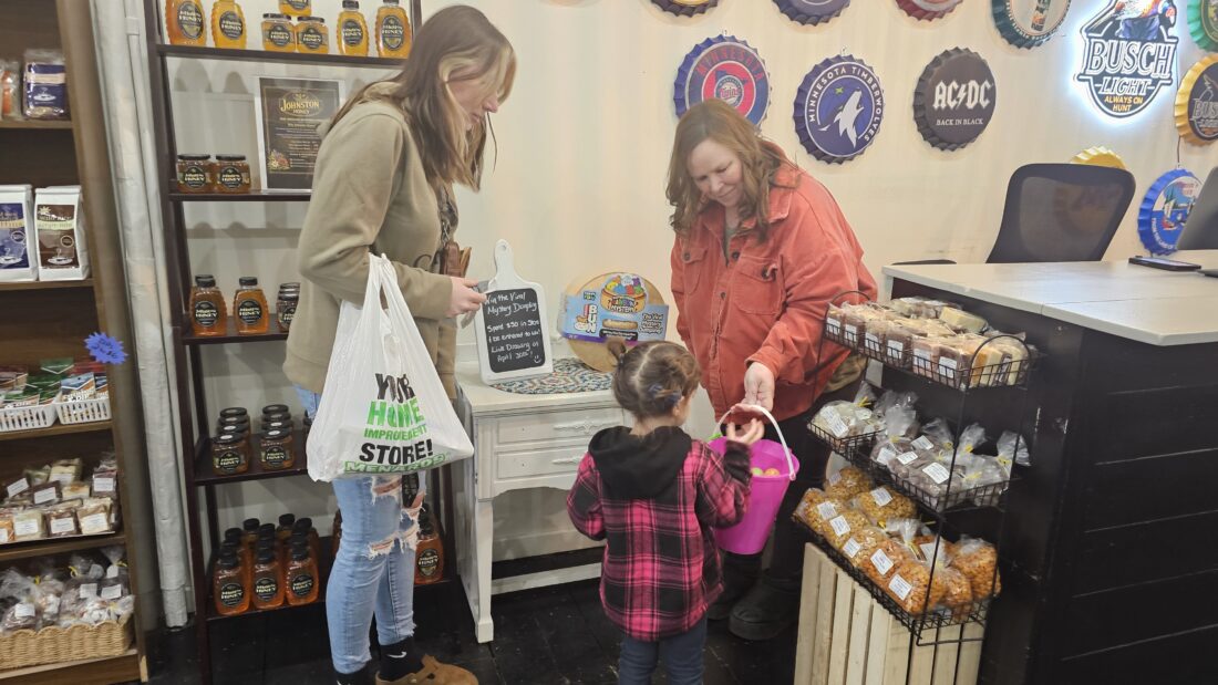 Customer turnout remained strong throughout the event. Alexia Ibberson of Sleepy Eye stopped in while her son received a haircut at Capone’s. She attended with her daughter, Lyla, after visiting the Easter egg hunt at the New Ulm Civic Center earlier in the day.